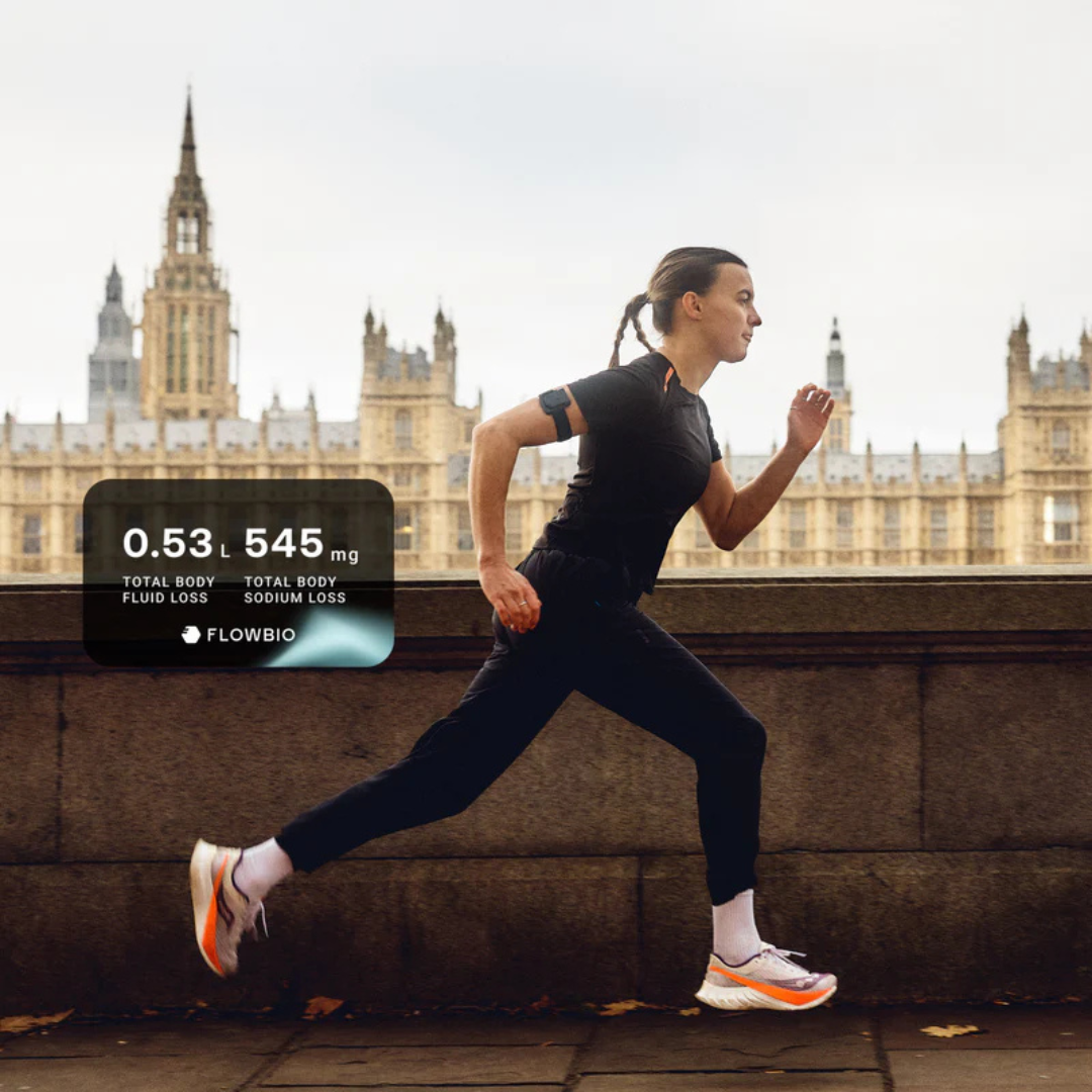 The Sensor captures your sweat and analysis its contents. Proprietary algorithms use the sensor data to estimate your sweat rate and sodium loss. The data is shown on the FLOWBIO App, offering recovery and preparation suggestions and tips to optimise your performance.
