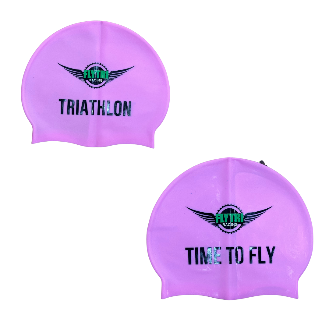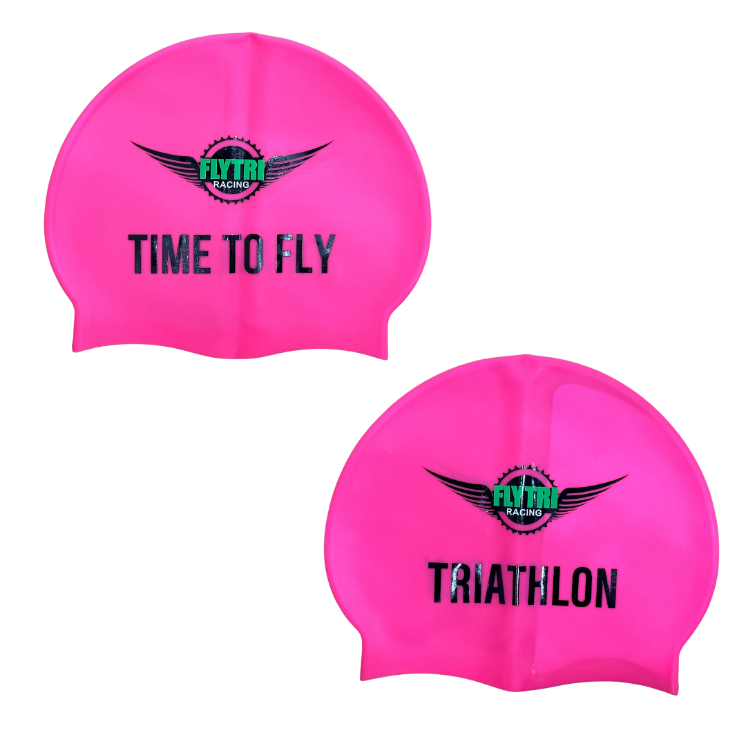 Stay visible and streamlined in the open water with the Fly Tri Racing silicone swim cap. This bright colored cap is a must-have for triathletes and open water swimmers alike.